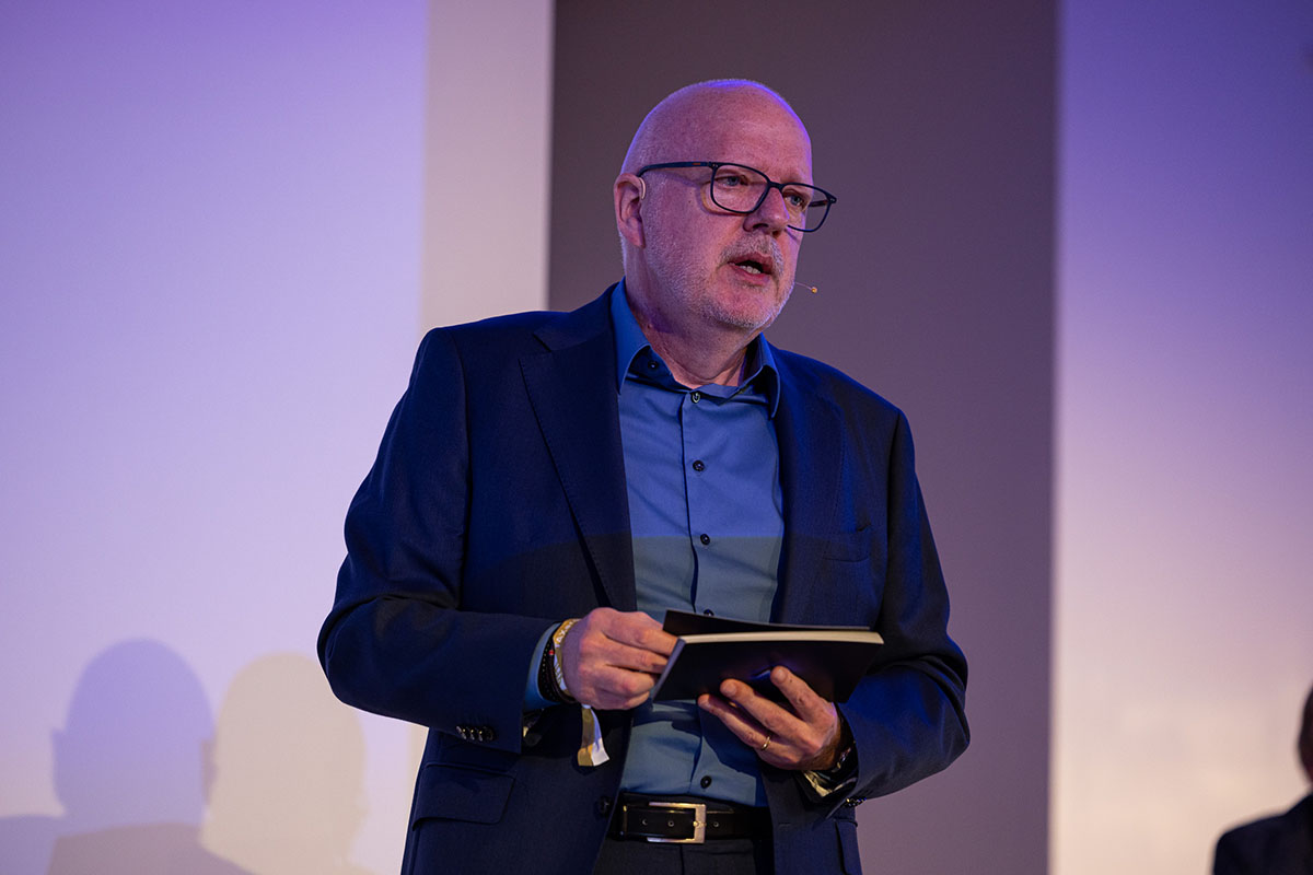 Präsident Christian Böke begrüßt die Siegelträger im Sprengel Museum Hannover zur offiziellen Übergabe der Trophäen.